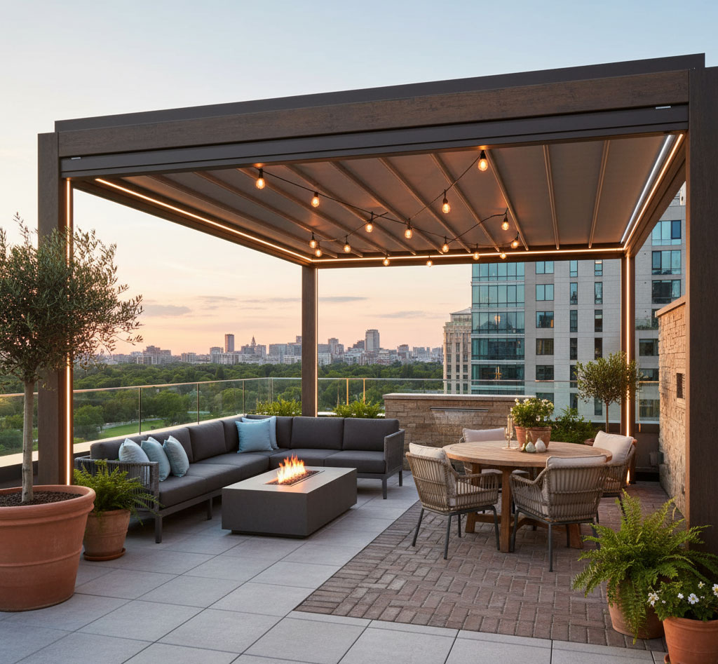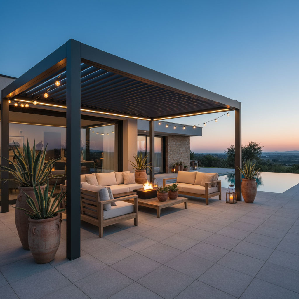 Perfette per creare un’area vivibile e ombreggiata in giardino o su ampi terrazzi. La loro struttura solida, in alluminio o ferro, permette di coprire grandi superfici, trasformando lo spazio esterno in un vero e proprio “salotto” all’aperto. Possono essere integrate con sistemi di illuminazione a LED e chiusure laterali in PVC trasparente per un utilizzo anche in autunno.
